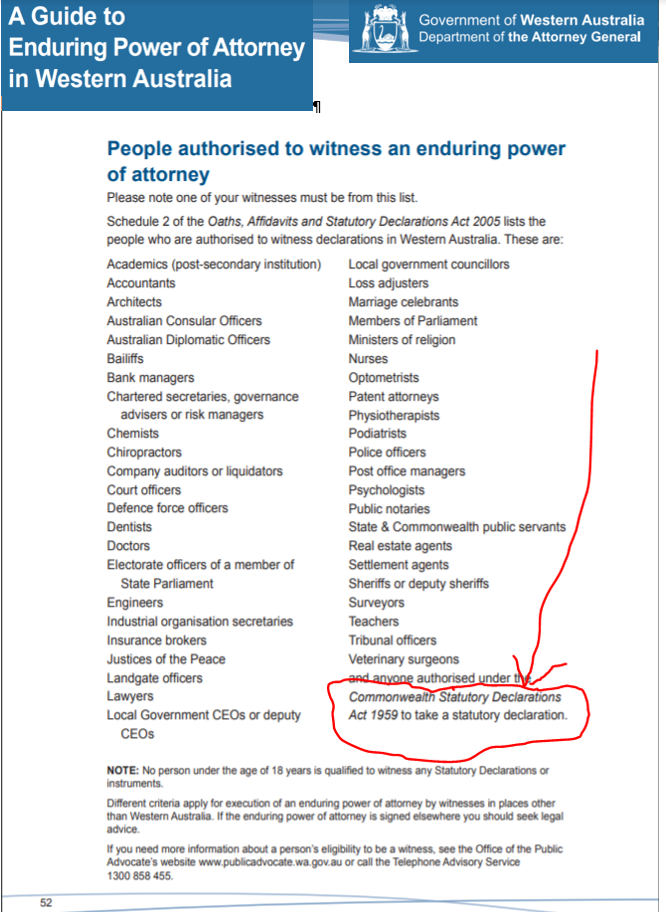 - A person can witness a WA POA if they can witness Commonwealth Statutory Declarations.