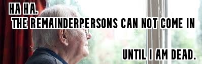- Remainderperson – Fred and Mavis the aged husband’s children from his first marriage